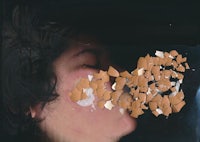 Scanography of brown eggshells and face pressed against glass. This series was made in response to the coerced sterilization happening in ICE detainment camps. As well as the disproportionate amount of brown death suffered from Covid-19.